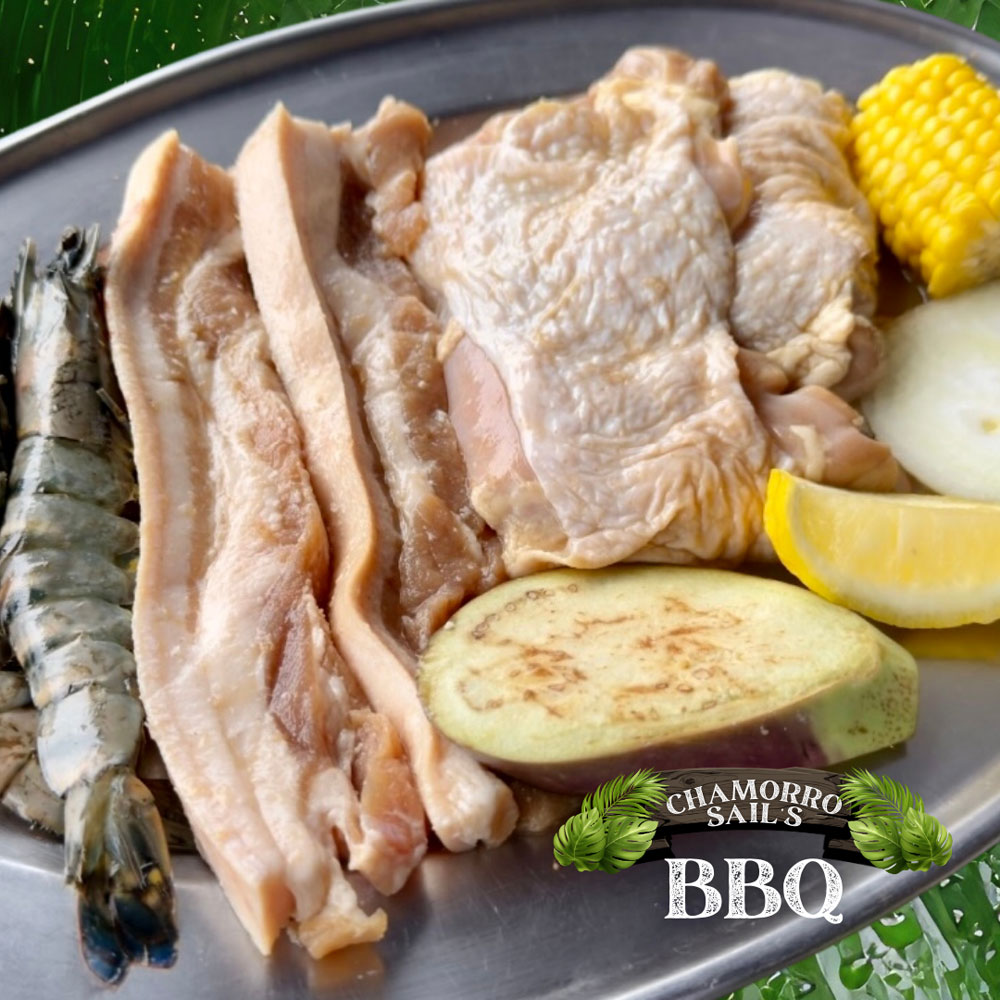 Marinated Chicken BBQ | Pork Belly |2pc Prawns |Eggplant | Corn Cob | Onions